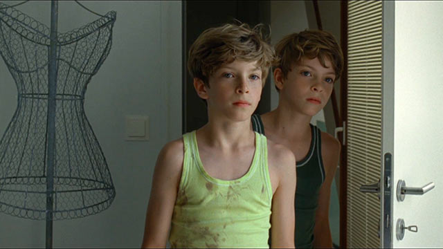 Para começo de conversa, a sinopse é uma grande mentira! Te faz acreditar que verá na tela uma história impressionante, achando até que o mal está encarnado no corpo da mãe e que as duas crianças são as vítimas. Sendo que é totalmente o contrário. Felizmente pude perceber isso, não muito tempo depois da sessão começar, mas aí já era tarde, já tinha pago pelo ingresso, e o jeito era assistir até o final para ver o que ia dar (quem sabe assim, amenizasse mais a sensação de dinheiro jogado no lixo). Logo de início, reparei que a mãe, não se dirigia ao segundo filho, o tal “Lukas” tão mencionado nas cenas. Hummm, aí tem, desconfiei logo de cara e no final do filme, aquilo que eu já sabia, foi confirmado. Muito previsível.