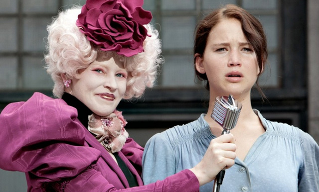 Voltando a sinopse da trama, Katniss não foi a sorteada desta edição do evento, mas, se voluntariou para proteger sua irmã de 12 anos, que foi a azarada. A propósito, muita injustiça escolherem jovens de 12 a 18 anos e colocarem essa mescla lutando junto, afinal, como uma criança mais nova, poderá competir de igual para igual com uma pessoa de 16 a 18?! Mas essa crueldade não é nada, perto do que vemos no decorrer do filme. Massacre, uns matando os outros (ainda bem que essas cenas não são tão explícitas), enquanto a nata da sociedade assiste e se diverte. Falando neles, achei muito curioso que esses personagens fossem todos caricatos e extravagantes, como se viessem de outra dimensão cultural, levando em conta as tecnologias do filme, um tanto futurista, eu diria.